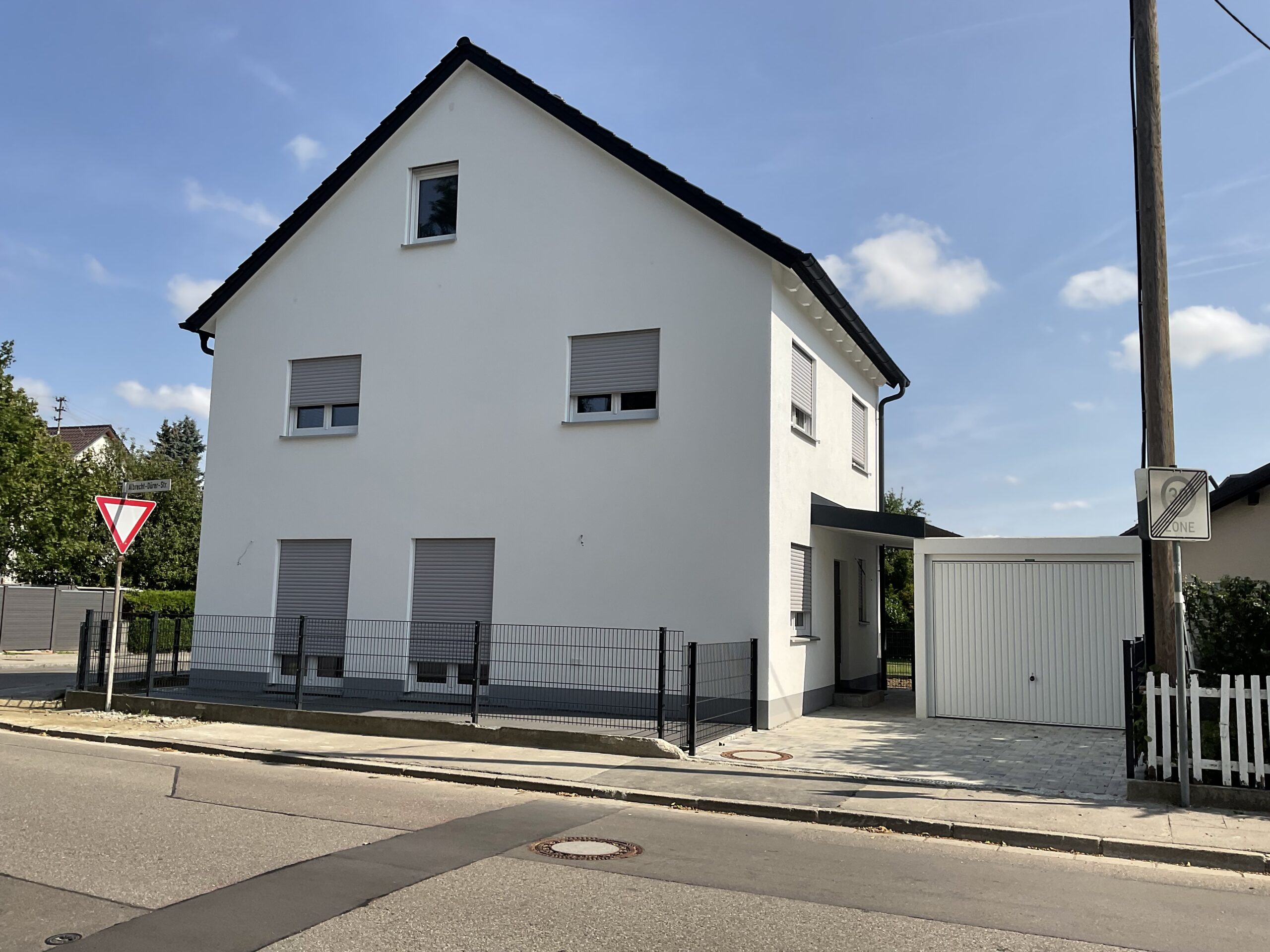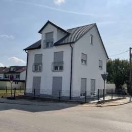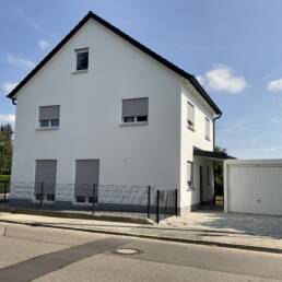 Dieses Einfamilienhaus in Mering besticht durch seine schlichte, klare Architektur und die helle, weiße Fassade. Das klassische Satteldach rundet das Gesamtbild harmonisch ab. Große Fensterflächen und französische Balkone sorgen für lichtdurchflutete Räume, während der Zwerchgiebel im Dachgeschoss zusätzlichen Wohnraum bietet.